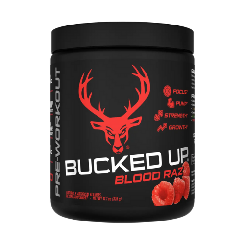 Bucked Up Blood Raz is a pre-workout supplement designed to support workout intensity, focus, and performance. It features a transparent ingredient profile with clinically dosed ingredients to support energy and training readiness.